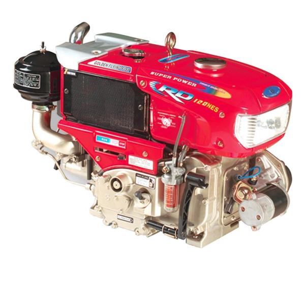 Diesel engine RD120NES (Old head lamp) , single-cylinder , horiaontal , 4-stroke , water-cooling ,direct injection. The continuous output is 11HP , the maximum output is 12HP , condenser with old head lamp , electric starting , red.